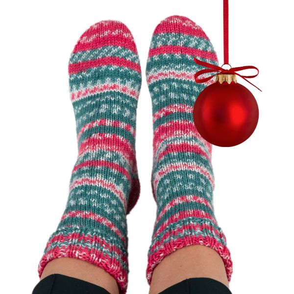 Nasza włóczka Hot Socks XMAS występuje teraz w limitowanej edycji – to grubsze włókno 6-py jest bardzo wytrzymałe; składa się z 75% wełny owczej i 25% poliamidu. Włóczka jest przystosowana do prania w pralce w 40°C dzięki technologii „superwash”, co zapewnia jej długotrwałą formę i odporność na filcowanie. Najlepiej używać delikatnego detergentu do prania wełny, aby skarpety zachowały swoją formę przez wiele sezonów.
