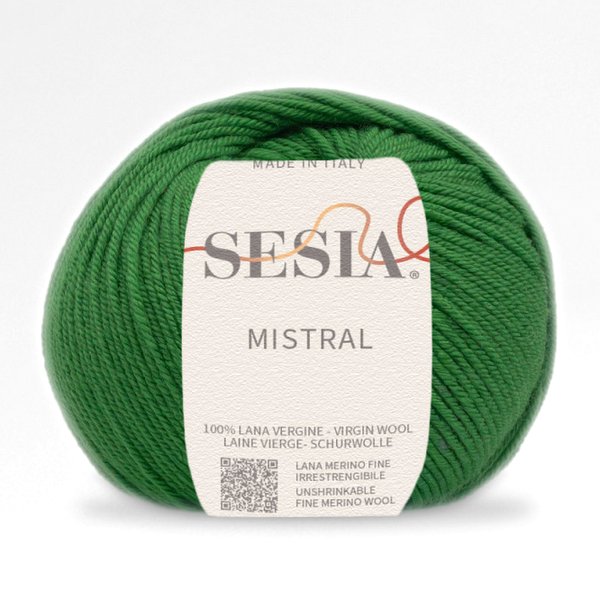 Włoska włóczka Mistral firmy Manifatture Sesia to w 100% wełna merino fine (dziewicza), wyprodukowana z poszanowaniem środowiska i z zachowaniem dobrostanu zwierząt – mulesing free. Powstają z niej piękne, równe oczka, a charakteryzuje ją niesamowita miękkość i przytulność, a ponadto – co rzadkie przy włóczkach merynosowych – brak rozciągania się gotowych wyrobów. Nadaje się dla osób wrażliwych, których “każda inna wełna gryzie” oraz dla dzieci. Mistral idealnie sprawdzi się we wszelkich dziewiarskich projektach na wszystkie pory roku. Doskonale wygląda we wzorach żakardowych. Zrobisz z niej piękne swetry, bluzki, kardigany, etole, szale, poncza, czapki i szaliki.