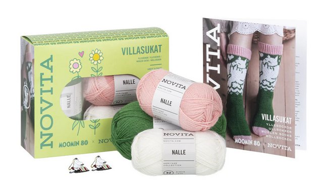 Skarpety wykonuje się z popularnej i wytrzymałej włóczki Novita Nalle grubości DK, która jest miękka, trwała i można ją prać w pralce. Twoje skarpety będą więc zarówno oryginalne, jak i funkcjonalne. Zestaw zawiera także urocze znaczniki dziewiarskie z postacią Mamy Muminka, które sprawią Ci radość już w trakcie pracy nad skarpetkami.